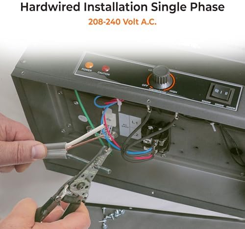 For installation, this model requires a single-phase hardwire connection (240V AC), ensuring a secure and efficient setup.