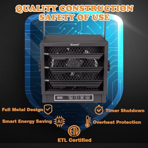 Built with heavy-duty steel and durable heating elements, this garage heater withstands challenging work environments, ensuring long-lasting use. ETL certification guarantees that your safety is prioritized, giving you peace of mind during operation.
