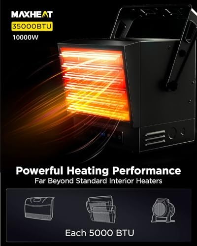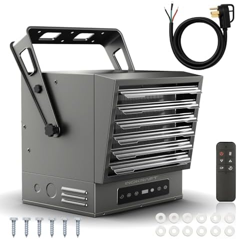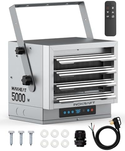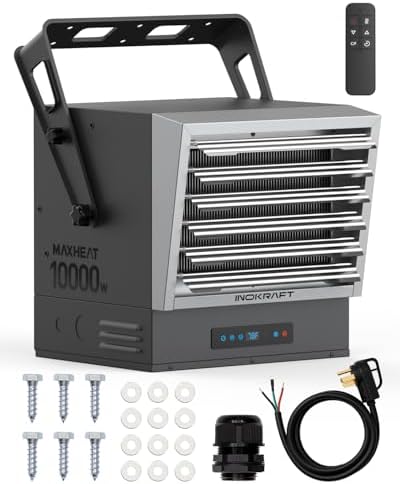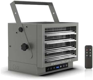 Transform your chilly garage or workshop into a warm haven with the InoKraft Max Heat. This powerful 240V, 10,000 watt fan-forced wall heater can elevate the temperature by up to 90℉ in a 1000 ft² area, ensuring quick and efficient heating.