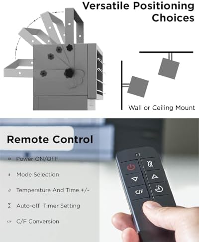 Install the heater with five angle adjustments to precisely direct warmth where you need it. The adjustable louvers promote even heat distribution throughout your space, creating a comfortable environment.